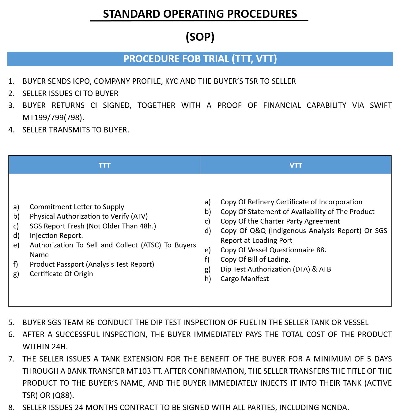 Please review the attached operational procedure. Furthermore, ensure that your Letter of Intent (LOI) encompasses the following documents:
